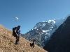 Encore 1200m de dénivellée à gravir pour atteindre la cime! Patrice et Cyrille ont dû surpasser une légère appréhension avant de s'élancer dans la pente raide où les ailes glissaient...
