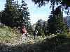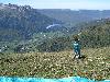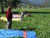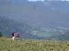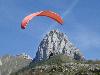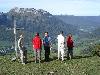 Aujourd'hui dimanche 8 octobre restera une grande date pour notre club... il s'agit en effet de la 1° rando parapente organisée dans ce cadre. Elle avait été prévue la semaine passée, et nous étions prêts... sous la pluie! Nous avons du subir les sarcasmes de personnages mal intentionnés nous traitant de limaces et autres gastéropodes.... mais rien n'y fit. Ce dimanche nous étions de nouveau prêts et fortement motivés. RV à Cusy à 8h30, et une demi heure plus tard nous voici à Jarsy. Les fonds de vallée dans les Bauges étaient encore dans la brume, mais les faces est resplendissaient déjà sous le soleil. Fabrice nous rejoignait à l'atterro, et nous pouvions pousser notre cri de guerre rituel: "Ca va l'faire"... 1h 30 de montée pour arriver au dessus de la croix d'Allan. Du chemin carrossable pouvant être emprunté par les 4x4... on se demandait bien pourquoi Fred voulait pas, ou n'avait pas osé, bref le 4x4 était en bas et nous avons fait les puristes: tout à pied, avec la voile sur le dos, et sans nous plaindre bien que j'ai remarqué que ( ------------censuré-----------).Tout était donc bien. Je ne vais pas vous faire l'article sur les chalets baujus, sur les sommets environnants, mais les Bauges restent un sacré joli coin de montagne. En haut légère tendance sud, et comme nous étions tous en forme sauf (-------------------------------censuré --------------------), alors nous sommes montés un peu plus haut. Là, Raymond nous a trouvé un super déco, y'avait plus qu'à courir. Y'en a qui avaient oublié leurs casques, d'autres leurs gants, mais tout le monde avait quand même un chiffon volant et une vague selette. Ouf! Le vol était doux comme tout, ça tenait même un peu sur les falaises à côté de l'atterro, que du bonheur et de bons posés sur un atterro immense et bien dégagé. Tous ravis de cette rado toute simple, pas compliquée et bien réussie. Le problème tout de même, c'est que de notre déco nous avons vu partir 2 voiles sur les faces sud du Trélod, le sommet voisin un peu plus élevé! L'autre problème, c'est que une fois posés, nous avons vu arriver peu à peu une dizaine de voiles qui avaient décollé sur les faces ouest du même Trélod. On avait l'air de quoi, nous avec nos 600 m de dénivellé. La décision fut vite prise, dans 15 jours, on va leur faire voir. C'est nous qui serons au Trélod. La rando parapente pour celles et ceux qui aiment, évidemment, c'et une super activité, on a le plaisir de faire un sommet, à son rythme, on a le plaisir de préparer son petit décollage, en écoutant les avis de l'un ou de l'autre, et puis c'est la descente comme on l'aime, sans se faire mal au dos, aux genoux. De gros plaisirs tous simples. Ce jour là il y avait Dominique, unique représentante de la gent féminine, Nathalie nous ayant lâchement abandonnés, Fred de la Biolle et son frère Jean Pierre des Ailes Beaujolaises, Raymond qui aurait bien décollé quelques centaines de mètres plus haut, Yannick qui nous a sorti la manche à air au décollage, Fabrice un membre fondateur du club que nous voyons trop peu et moi même, Pat votre secrétaire volant.