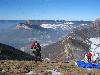 (entre temps la brume de fond de vallée s'est levée : la voiture est garée le long de la route que l'on voit en bas et d'où nous sommes partis) |