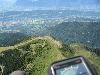 Le choix du décollage au sommet était bon : Il fallait bien être en haut pour attraper le thermique qui nous monta au dessus, voire très au-dessus du décollage (+1000m de gain !) pour adminer le paysage grandiose du massif des Belledones, avec une vue panoramique du Mont-Blanc au Mont Aiguille dans le Vercors. En l'air nous croisons beaucoup de voiles en provenance d'Allevard où a lieu une compétition.