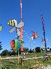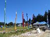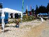 Bon, mais le matin, à part nous, il n'y a quand même pas eu grand monde sur le plateau... la faute au brouillard, la faute au système de navette avec interdiction de monter en voiture... allez savoir, mais toujours est-il que nous étions un peu seul. Ca nous a permis d'affiner la décoration du stand... d'accrocher plus de posters, de mettre les tee-shirts sur cintres, d'aller voir le stand de "Porté par le vent", tenu par un ex-moniteur de parapente très connu sur la région et membre de notre club : Christophe Martine.